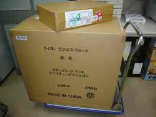 庶務課からの搬送をお願いした女性と、管理者には『大き目の家電』と説明していたが、巨大な箱の横にはくっきりと『タイヨーラジオコントロール ファイティングファルコン』の文字が・・・・Wさん、M先生、ごめんなさい。