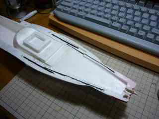 胴体後方上面を使用するサーボにあわせて切り出します。