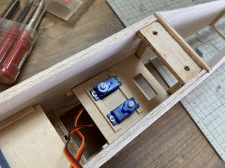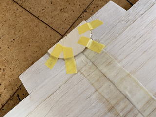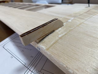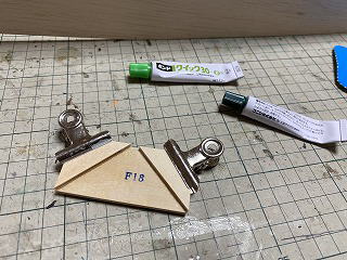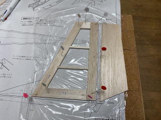 主翼固定用のべニアパーツをエポキスで接着。