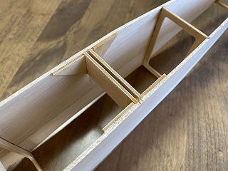 中央バルサの外側は3mmベニアで補強をしておきます。