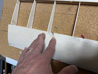 少し前後しますが、主翼中央リブの接着、ここは上反角を決定する非常に重要なところ。