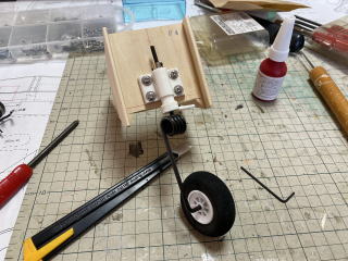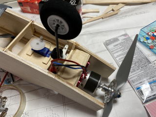 モーターを仮固定して配線の状況を確認して、ノーズギア部分はプランクします。
