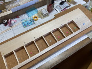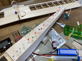 翼型は半対象ですのでねじれぬよう、しっかりと板に固定して製作します。