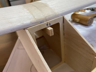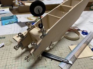 写真右には主翼固定用のダウエルがみえますが、実はこの位置決めが大変だった。