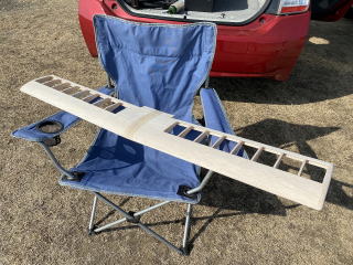 エルロンを仮固定した状態で主翼のサンディング。