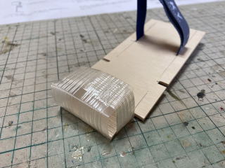 支えの棒を隙間なく支えられるように現物合わせで切り出してエポキシで接着。