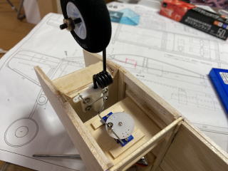 メインギアの固定、実際にタイヤを付けた状態で何度も図面と合わせて。