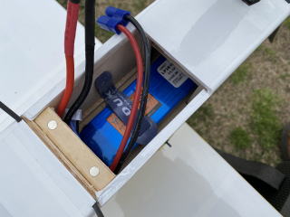 写真右にはバッテリーハッチを固定するベニア、ここに2個の磁石を埋め込んであります。