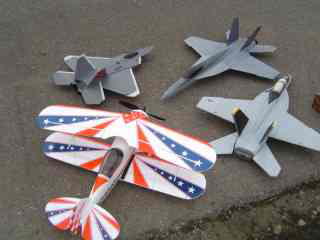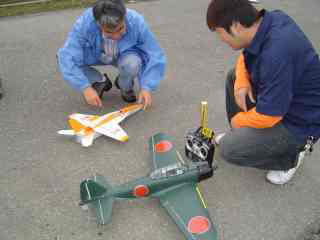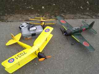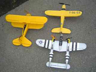 左はEPPフルスクラッチの小松本さんのWACO、剛性不足で次回に期待。