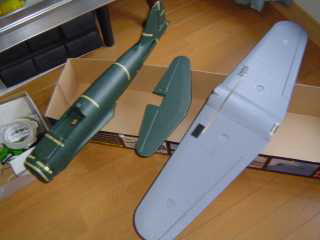 動翼をヒンジ固定してカウルを付けてみると、なんとなくテカテカした感じ。