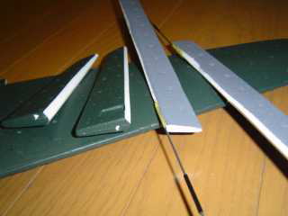 動翼の切り出し風景です。慎重に切ったつもりでもかなりずれていました・・・まあ気にしない。