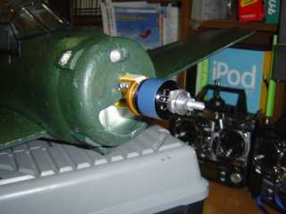 右の写真は今回自慢のモーターマウント。通常色はブルーですが30個に1個のレア物、ゴールドタイプです・・・とロビンの店長さんが言ってました。