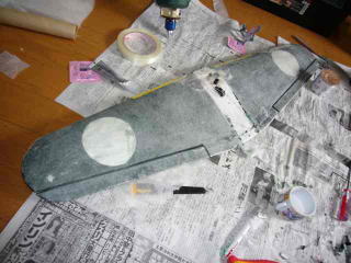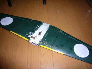 引き込み脚用に切り込んでいた部分には発泡スチロールを埋めて中央付近は得意の爪楊枝補強。