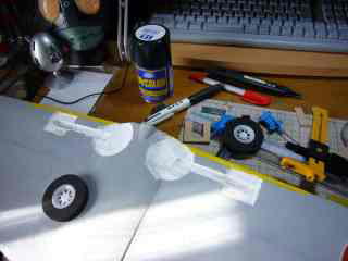 ここで下地塗り。タミヤのサーフェーサーは発砲もOKなんですね。