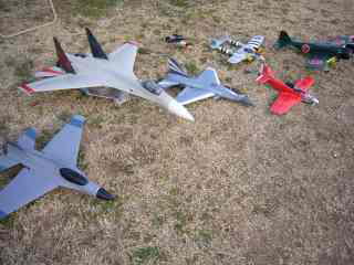 右はTATSUさんのかっとび飛行機軍団。EDF機のみでなく、特に赤いムスは速い!