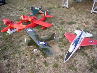 左はluckyさんの機体。左奥のバルサ製サボイアが一段と美しい。
