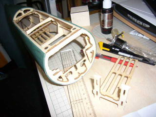 というわけで、早速自作します。3mmバルサでサクサクと、この時点では20g、案外軽く作れそうな気がしてきました。