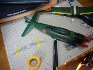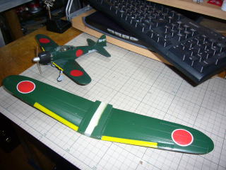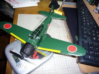 完成、即初飛行・・・最初はてんでダメ。あきらめかけましたが、te2さんのアドバイスにより機首に5gほどの錘をつけたところ・・・飛びます、飛びます!やった!