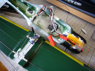 受信機はこの位置。もっと前にしたかったのですが、リンケージとの干渉を避けるとこの位置しかありませんでした。